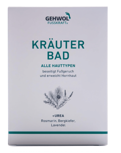 Gehwol Fusskraft Urtebad er et opfriskende fodbad med naturlige urteingredienser, der plejer og renser fødderne i dybden. Det varme urtebad hjælper med at fjerne uønsket fodlugt, samtidig med at det blødgør hård hud og gør fødderne klar til videre pleje.